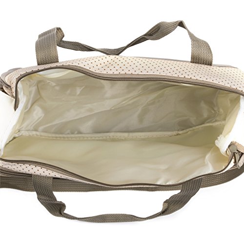 Extra roomy main compartment with multipe pockets ,Reliable zip-top closure with carrying strap, 2. Mid-Size Tote bag with zipper closure and shoulder strape for busy mom on the go