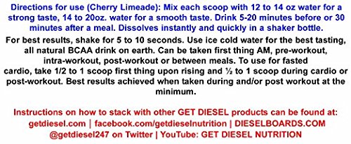 Dieselade All Natural Best Bcaa Available - 8g Vegan BCAAs per serving, 18.5 oz (525 grams),Cherry Limeade flavor