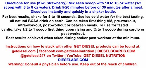 Dieselade All Natural Best Bcaa Available (Kiwi Strawberry) - 8g Vegan BCAAs per serving