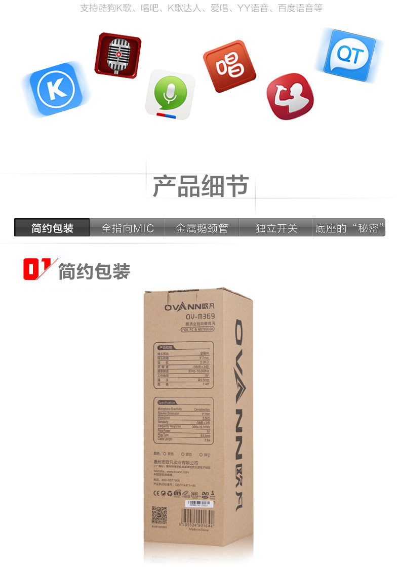 ovann/欧凡 OV-M369 台式电脑麦克风电容K歌话筒YY笔记本语音聊天