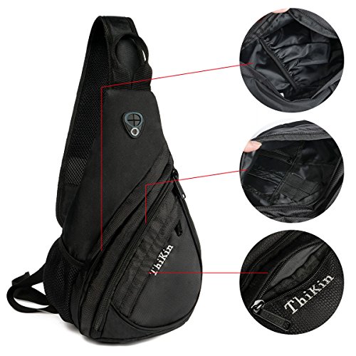 -. Brand : ThiKin -. Department : Mens -. Feature : Safely store and organize your cellphone, ipad mini, 8.1" tablet, wallet, keys, ID card, credit card, small snacks, and other small personal belongings. / Stylish, multi-function and practical design. Ideal for outdoor sports (hiking, camping, climbing, cycling, etc) and travel use / Consists of two zippered main bag, 2 small zippered pockets (one front pocket and one rear pocket), and one strap pocket. / Dimension: 13.4 x 6.7 x 3.4 (inches) / Back mesh padding provides maximum comfort. Side pocket for water bottle. -. IsAutographed : 0 -. IsMemorabilia : 0 -. Label : ThiKin -. Manufacturer : ThiKin -. ProductGroup : Sports -. ProductTypeName : OUTDOOR_RECREATION_PRODUCT -. Publisher : ThiKin -. Studio : ThiKin -. Title : ThiKin Packable Shoulder Backpack Sling Chest CrossBody Bag Cover Pack Rucksack for Bicycle Sport Hiking Travel