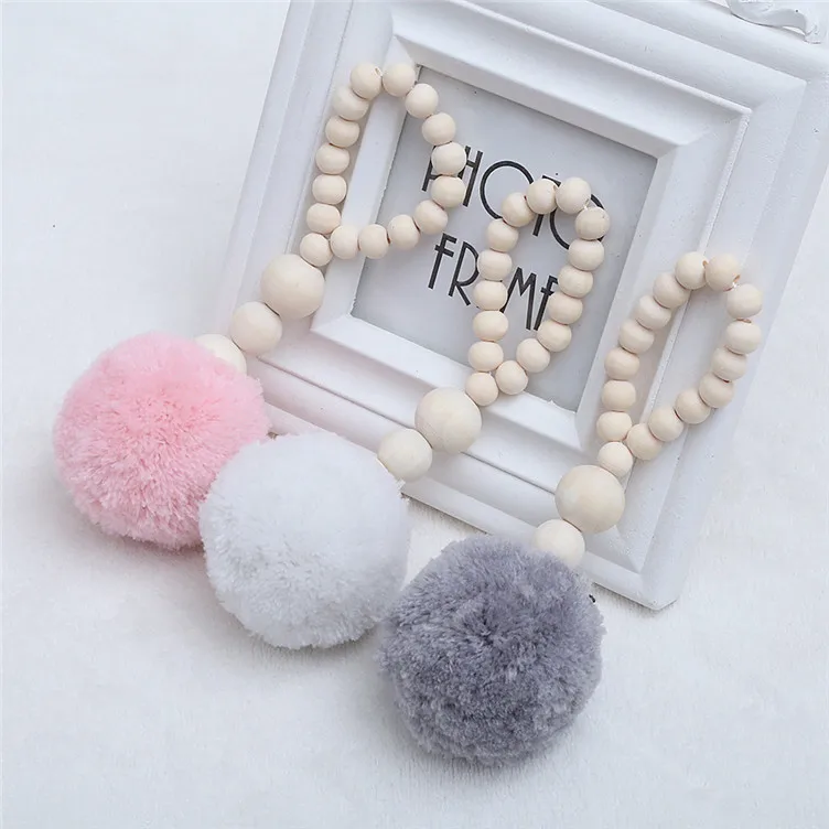 Product Name:Wooden Beads Garland Hanging Decorations with Yarn Tassels Gift