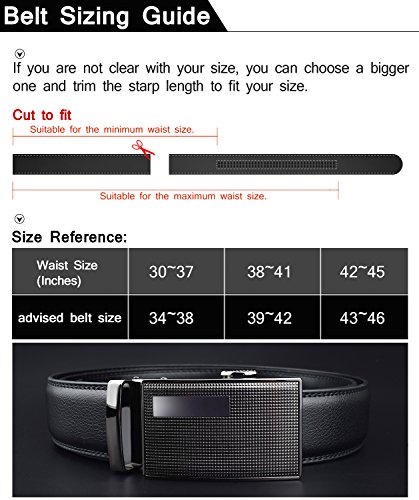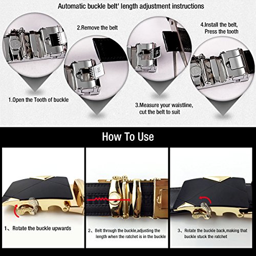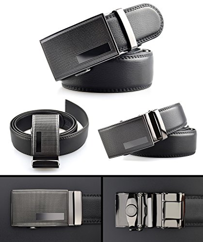 ❤Automatic Buckle Leather Belt for Men - Alloy buckle, double edge stitching.Durable rubber ratchet, holeless belt, easy to use. Just slide the ratchet belt into the belt buckle and pull the belt through, the buckle simply auto locks the belt, to release the belt, gently push the lever on the side of the buckle and lock will snap. Simple, smooth and sleek!