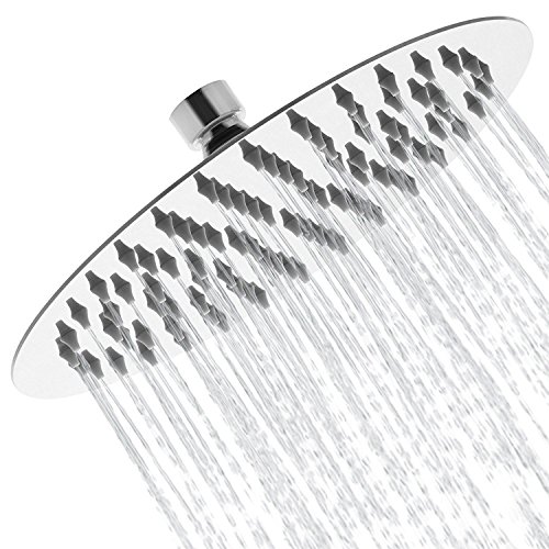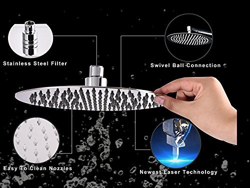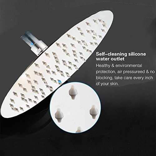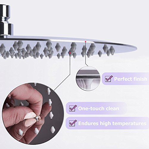 【LUXURY SHOWER】Extra large rainfall shower head, 12 by 12 inch, ultra-thin only 2 mm thick, 144 high pressure silicon nozzles and gloss finish. With the swivel ball connector you can adjust and fix it to any angle you like. It immediately adds luxury look to your shower as if you are in a luxury hotel or spa!