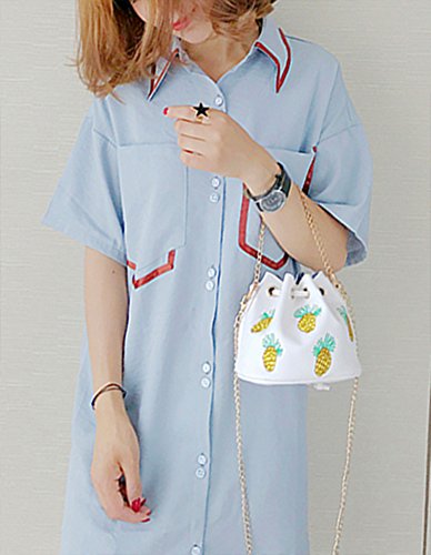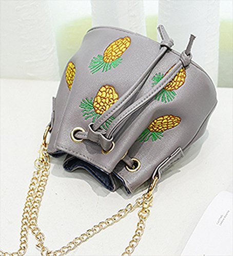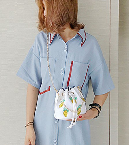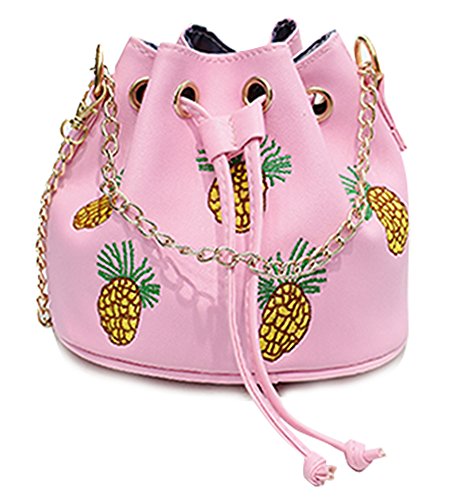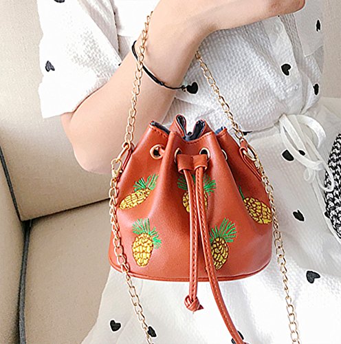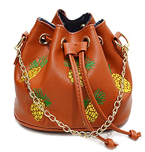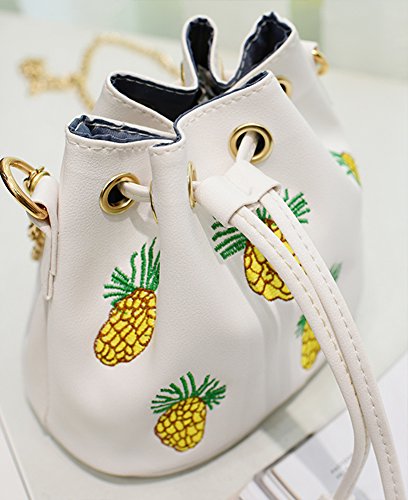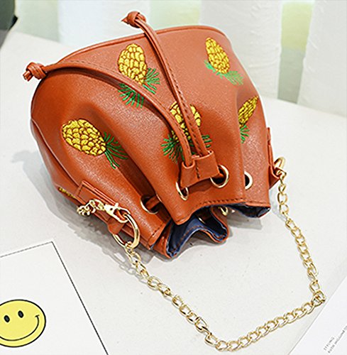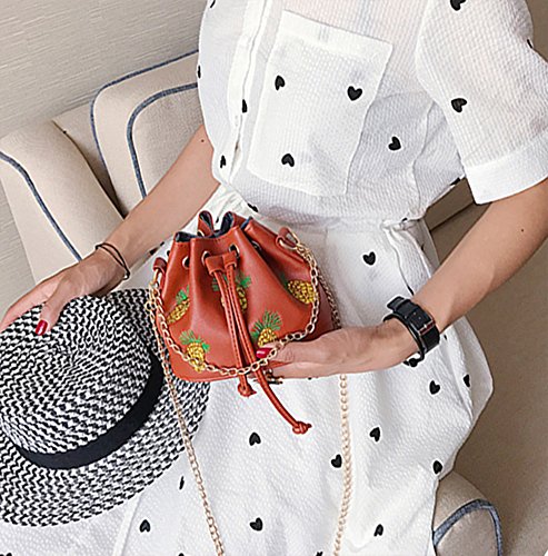 -. Title : QZUnique Cute Pineapple Pattern Drawstring Handbags Bucket Shape Cross-Body Messenger Metal Chain Satchel Mini bag