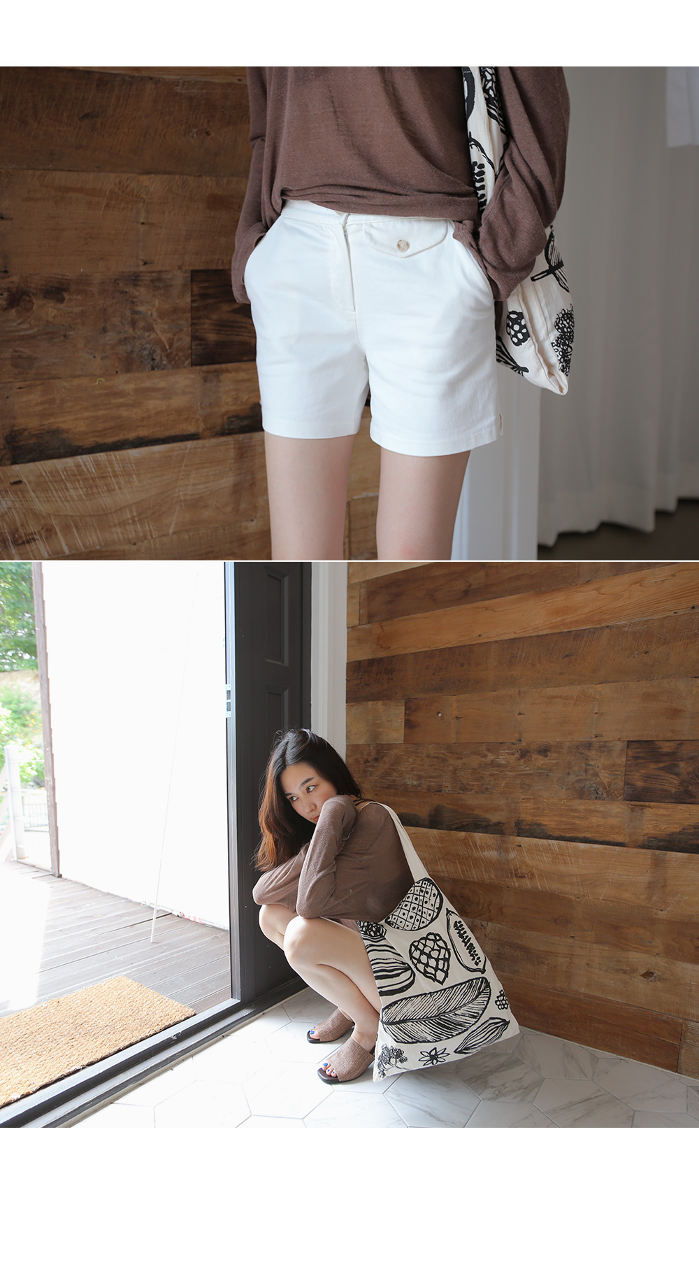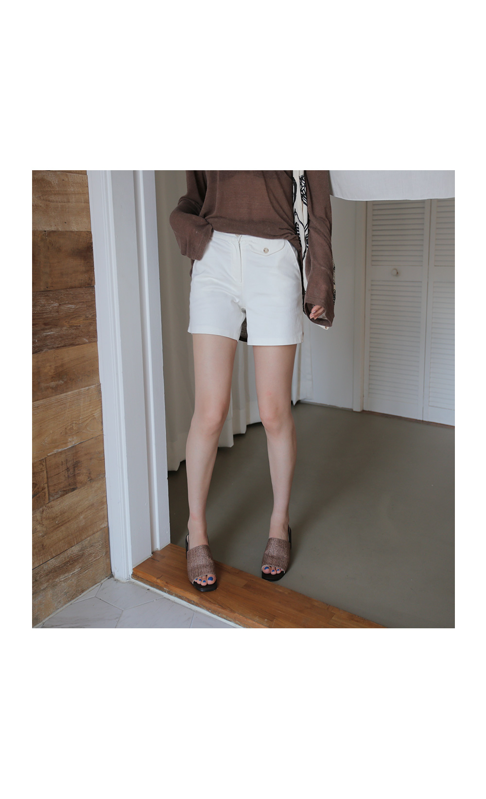 기본에서 크게 벗어나지 않았지만 앞쪽 언발란스한 한쪽 포켓덮개가 디자인을 한층 더 캐쥬얼 하게 표현한 베이직한 반바지에요