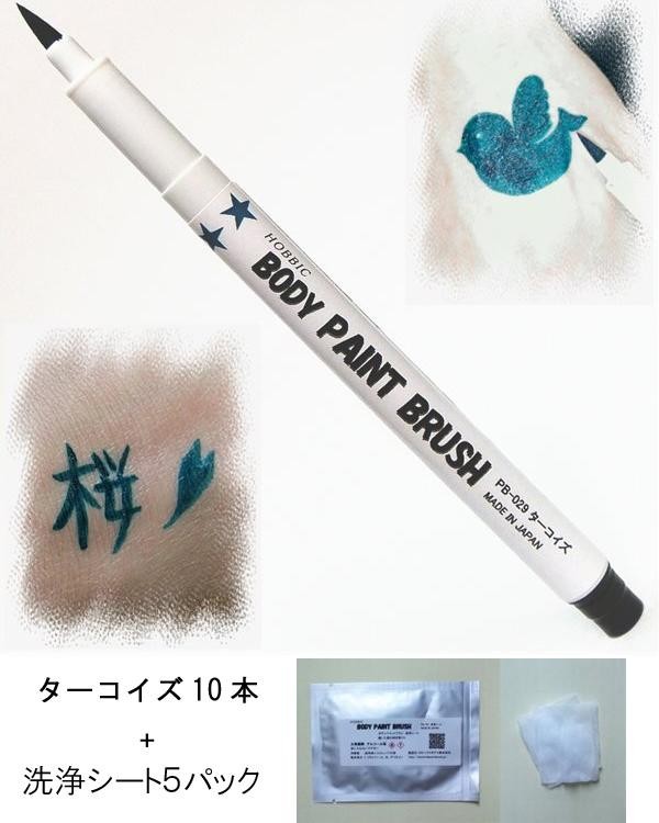 | ボディペイントブラシはお肌にやさしいボディペイント専用のペンです。いつでもどこでも気軽にボディペイントやボディアートが楽しめます。洗浄シートはコットンパフに洗浄液を含ませています。 |