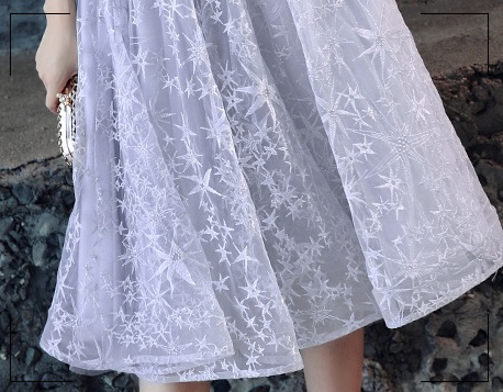重ねたレーススカートとウエスト部分の大きなお花の刺繍がポイントに♪