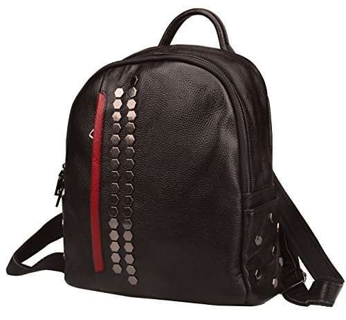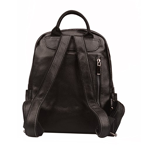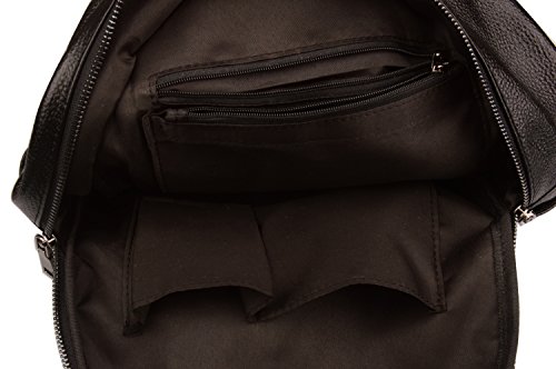 -. Brand : Fiswiss -. Color : Black -. Department : womens -. Feature : Full grain cow leather. Fabric lining / Four pockets in the interior, two are zippered / Adjustable double shoulder straps / 10.5'' (L) X 5'' (W) X 11.8'' (H) / Since leather material is very soft, some wrinkles may on the surface of the handbag, that is not quality problem. -. ProductGroup : Shoes -. ProductTypeName : HANDBAG -. Size : Medium -. Title : Fiswiss Women's Genuine Leather Casual Backpack Everyday Purse Handbags