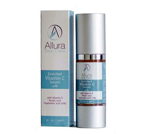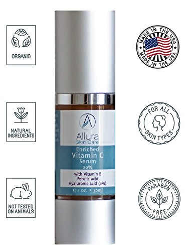 -. Feature : ENJOY YOUNGER BRIGHTER LOOKING SKIN with Allura Skin Care's Enriched Vitamin C Serum; Made with Stay C 50, a superior stabilized form of Vitamin C that is easily bioconverted for rapid takeup; Providing excellent anti-aging protection from the effects of environmental factors like sunlight, smoke and air pollution / SEE FINE LINES AND WRINKLES DISAPPEAR and skin firmness and texture improve; Hyaluronic acid hydrates and plumps the skin; Vitamin C stimulates collagen production and repair, effectively rebuilding the skin's scaffolding system / WATCH AGE SPOTS FADE AND SCAR TISSUE REDUCE as the antioxidants in our vitamin C serum work their magic combating the photaging damage from free radicals; Evidence sests that darker skin tones are more susceptible to inflammatory pigmentation damage which can be countered by the use of topical vitamin C / FORMULATED FOR MAXIMUM EFFECTIVENESS our vitamin c serum truly is the best for face and skin; Scientific studies have shown that the active ingredients in our vitamin C serum provide substantial protection against oxidative skin damage, including redness, sunburn cell formation and DNA mutations related to skin cancer / MADE WITH NATURAL AND ORGANIC, VEGAN AND CRUELTY FREE INGREDIENTS without fragrances, parabens, alcohol or sulfates; Supplied in an airless pump bottle to prevent degradation caused by exposure to air and light