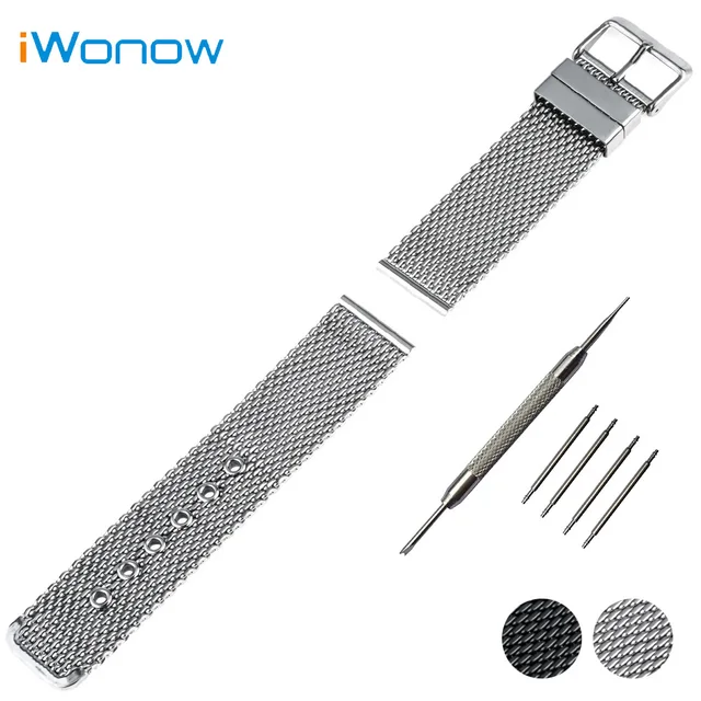 | [해외] 스테인레스 스틸 시계 밴드 20 미리메터 22 미리메터 24 미리메터 범용 손목 핀 버클 스트랩 손목 벨트 팔찌 블랙 실버 + 봄 바 |