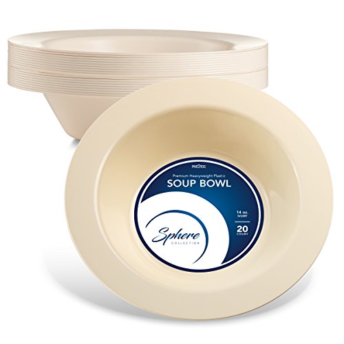 SPHERE PLASTIC BOWLS / SOUP BOWLS | 14 Ounce Disposable Bowls | Round Ivory Party Bowls, 20 Pack | Elegant & Sturdy Heavy Duty Party Supplies Plates for all Holidays & Occasions
