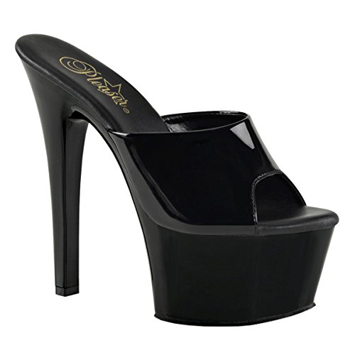 Womens Black Platform Heels Slide Sandals Vegan Leather Shoes 6 Inch Heels