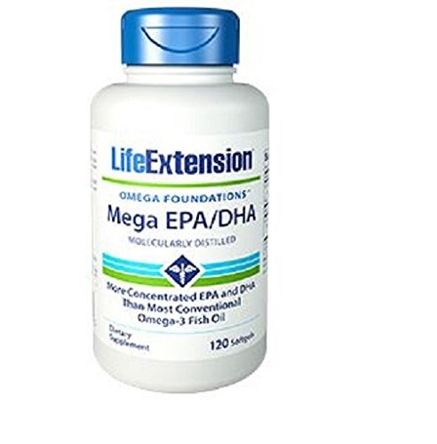 Life extension mega epa dha 120 soft gels supports cardiovascular health and increased life span.