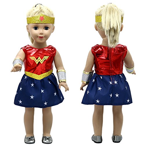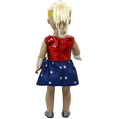 The dress is made for 18 in American Doll. Do you want to win your child over? Get her one of this very adorable costume. Your little girl will dress up her own little Wonder Woman. Click the Add to Cart yellow button at the right hand top corner of this page and start dressing your doll like Wonder Woman. Product will be delivered directly to your door. We have introduced this item at a lower cost. Price will go up soon.Feature