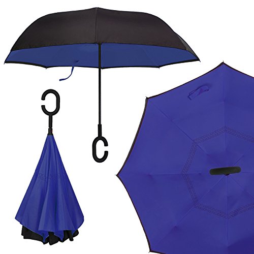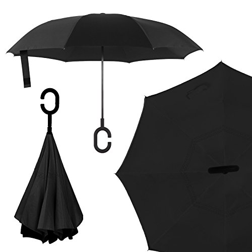 - Self Standing - Looking to dry the umbrella or impress your mom? No problem. Simply unattach the velcro and allow the inverted umbrella stand in all its glory.