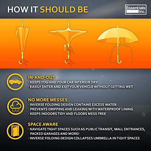 Receive our 100% money Back Guarantee and add the Essentials Inverted Umbrella to your cart today! 0 |