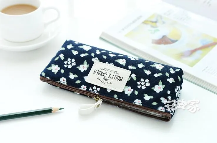 クリエイティブ韓国文具スタイルかわいい花花鉛筆バッグキャンバスペンケース用子供学生ギフトaa