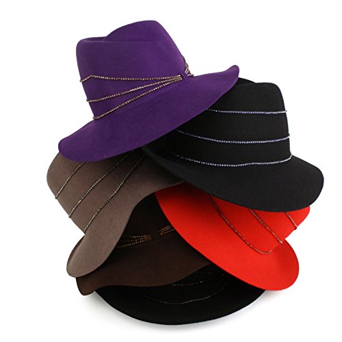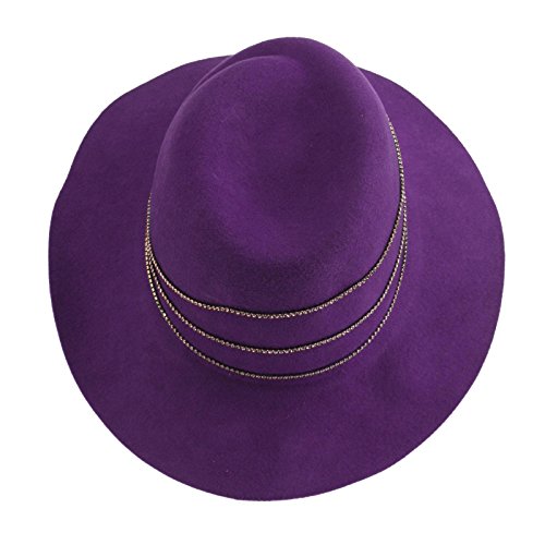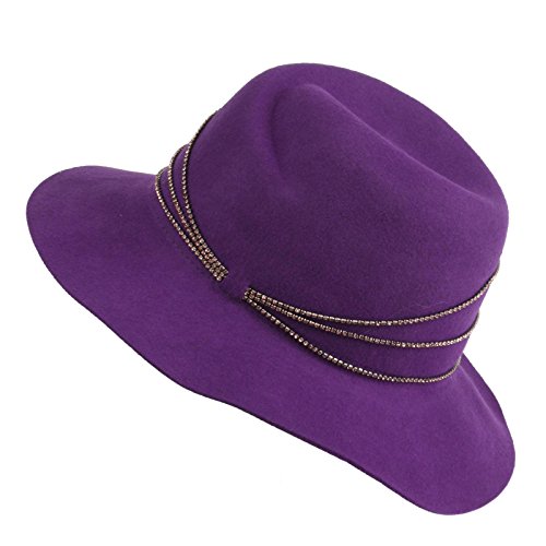 -. Title : Winter Wool Felt Fancy Jewel Fedora Floppy Panama 3" Wide Brim Dress Hat Purple