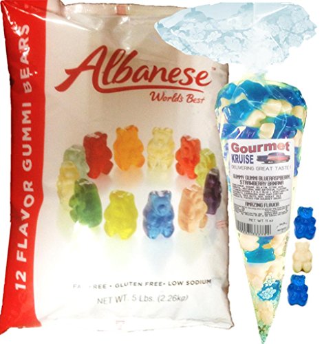 -. Title : Gummi Gummy Bears Albanese 12 Flavors-Bulk Candy 5lb Bag With Blue Raspberry And White Strawberry Banana Gourmet Kruise Signature Gift Bag 11 OZ (NET WT 5 LBS.11OZ) 2 Item Bundle