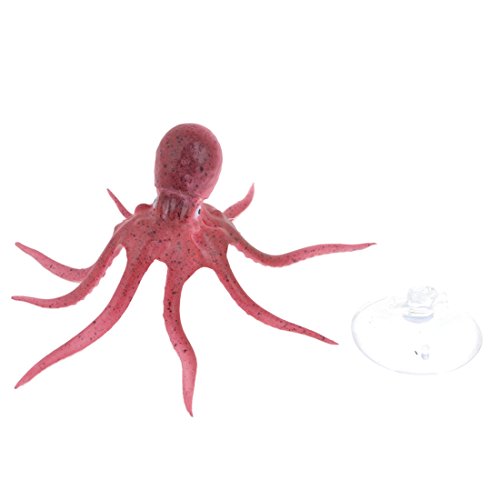 Amaranth Color soft plastic simulation Octopus, beautiful and lifelike decoration for fish tank or aquarium. Unique design for the fins of the Octopus, which can be wiggling up and down, just in the flowing water. With suction cup and a line drawing the Octopus easily in position.Feature