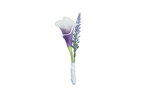 Generic Hand Tie Artificial Flocked Lavender ,Calla Lily Bouquet with Men Groom Corsage for Wedding Home Office Arrangement Decor (Pack of 1 Set)
