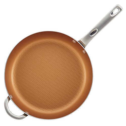 Go deep and unleash your creative kitchen passions with the Ayesha Curry Home Collection 12-Inch Nonstick Deep Skillet With Helper Handle. The Ayesha Curry Home Collection puts inspiring, top-quality cookware in easy reach for cooking up fun and easy weeknight family dinners or making a signature meal for brunches, date night, or holiday get-togethers. The 12-inch Nonstick Deep Skillet With Helper Handle features chic, modern style and higher pan walls for a deeper skillet that's perfect for mastering your chicken parmesan or just pulling together a generous helping of comfort food like Ayesha's Five Ingredient Pasta. Constructed from fast- and even-heating aluminum with stylish hard porcelain exteriors, the cookware features a sleek silhouette and looks great from countertop to stovetop. More than just a pretty pan, this high-quality skillet is heat safe to 500 Degree F and features a double-riveted stainless steel handle and shatter resistant glass lid for wielding your max versatility in the kitchen. The glass lid locks in heat and moisture for the juiciest Mirin and Soy Steak to pair with sushi rice, and a diamond-textured surface and enhanced nonstick coating provide long-lasting, effortless food release and easy cleanup of even the gooiest recipes. A convenient helper handle makes it simple to manage family-sized one-pan dinners or a party platter of Ayesha's Pork Chops and Apples. Plus, this Ayesha Curry kitchenware helps support No Kid Hungry to provide up to 500,000 meals to children in need. Learn more at nokidhungry.org/onedollar. Get your creative kitchen cool grooving and pull off simple and sophisticated recipes easily with the Ayesha Curry Home Collection Porcelain Enamel 12-Inch Nonstick Deep Skillet.Feature