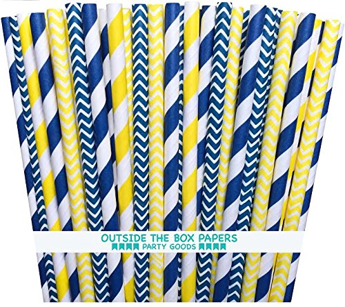 -. Title : Outside the Box Papers Yellow and Navy Blue Chevron and Stripe Paper Straws 7.75 Inches- 100 Navy Blue, Yellow