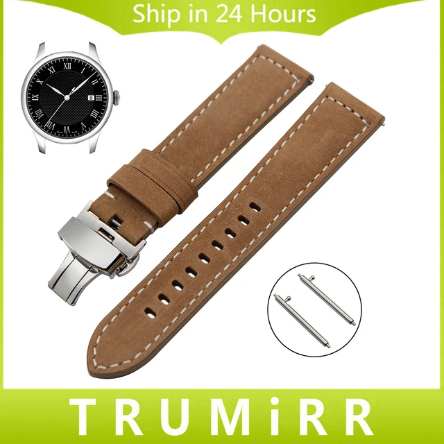 | [해외] 빠른 릴리스 손목 22 미리메터 대한 Tissot Luminox 론진 미도 이탈리아 정품 가죽 시계 밴드 스틸 버클 손목 스트랩 브라운 |