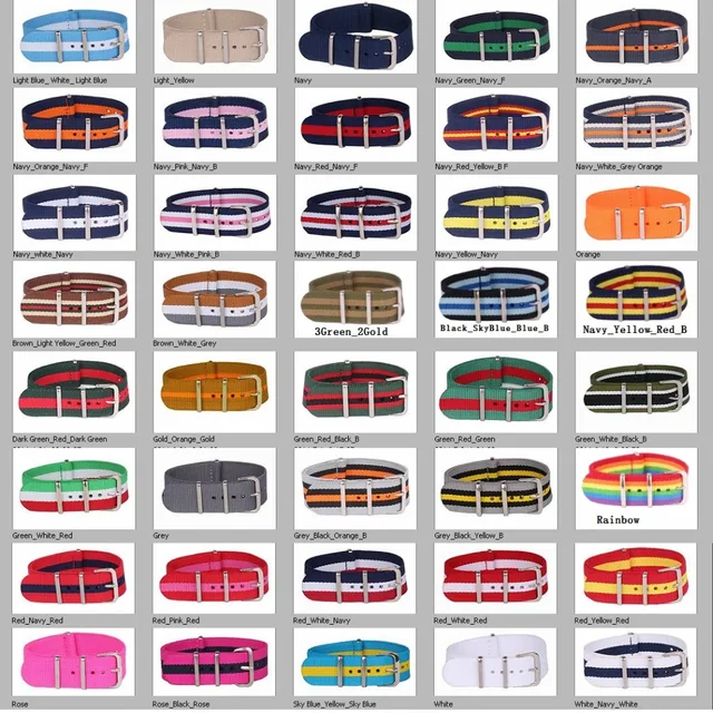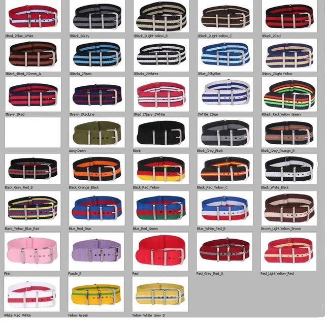 | [해외] 2 20% 오프) 도매 스트라이프 Cambo 군사 솔리드 블랙 시계 18 미리메터 나토 직물 나일론 시계 밴드 버클 18 미리메터 |