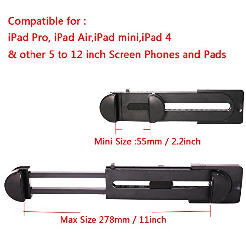 √ Easy adjustable width, with easy and secure lock. Fits most best-selling tablets and cell phone - including Apple iPad, Samsung Galaxy Tab, iphone all models;