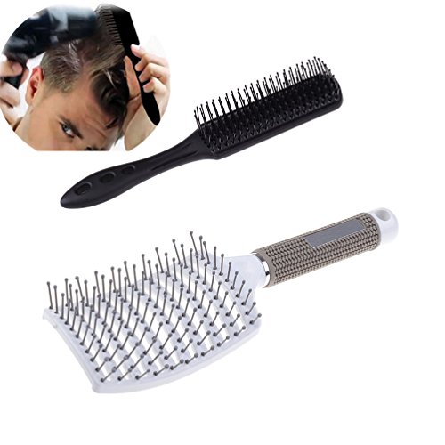 CosCosX 2 Pcs Styling Hairbrush Anti-static Detangling Thick Massage Hair Comb Curved Vented Wet Ribs Hair Brush Hairstyle Tool for Men and Women