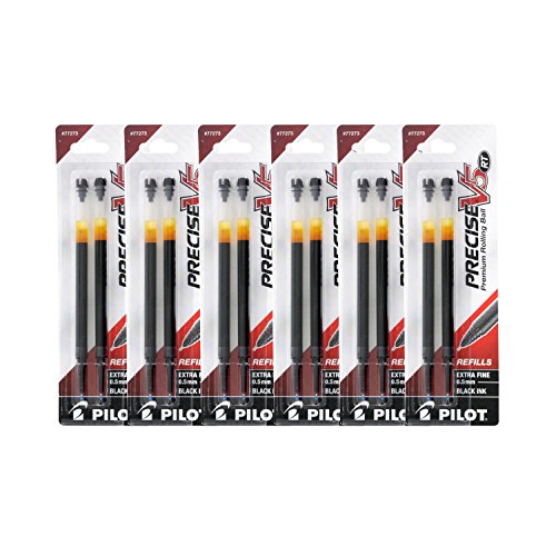 Pilot Precise V5 RT Liquid Ink Retractable Rollerball Pen Refills, 0.5mm, Extra Fine Point, Black Ink, Pack of 12