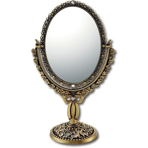 | 細かい模様使いで全体をデコラティブに仕上げたオーバルタイプのスタンドミラー。持ち運びに便利な安定感あるスタンドデザインは、心地良い使用感を生みます。表裏両面使えるリバーシブル仕様で、一方は拡大鏡になっています。ミラーを好みの角度に変えれて、使い勝手抜群!! |