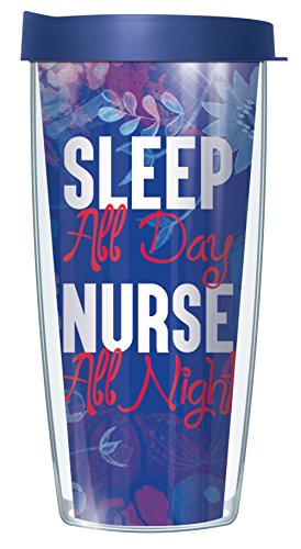 Sleep All Day, Nurse All Night 16oz Mug Tumbler Cup with Blue Lid