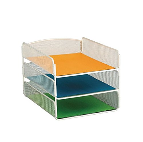 -. Title : Safco Desk Tray, Three Tiers, Steel Mesh, Letter, White