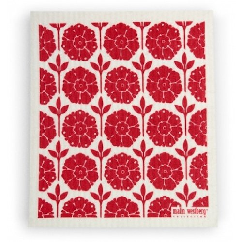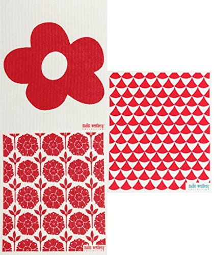 Swedish Dishcloth, (RH) Set of 3 RED Designs Flowers