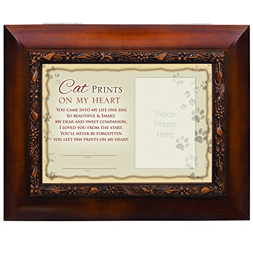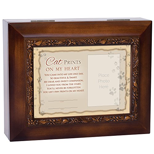 Cat Prints On My Heart Pet Memorial 9.5 x 8 inch Wood Finish Ashes Memorial Urn Box