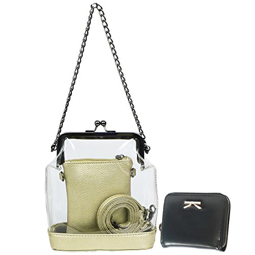 Product Description Finally a clear bag that is small and stylish. Most clear bags in the market is big and bulky totes, but with kilofly Transparent 2-in-1 Clutch Shoulder Bag, you can now flaunt your cute stylish clear bag at work, concerts, and all the places where only clear-bags are allowed. Moreover, no more worries on food stains or makeup grains, this lovely bag is easy to clean inside and out and protects your valuables by keeping them dry. Its waterproof design is also perfect for a trip to the beach and on rainy days.