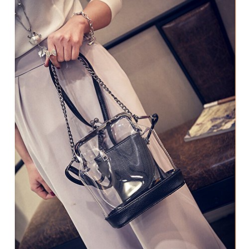Straps are adjustable and removable - This way you can wear it as a shoulder bag, crossbody bag or simply as a clutch. Moreover, you can wear this bag as a shoulder bag in 2 ways. You can either attach the shoulder strap to the big clear bag or to the smaller PU leather bag. Definitely the bag for you!