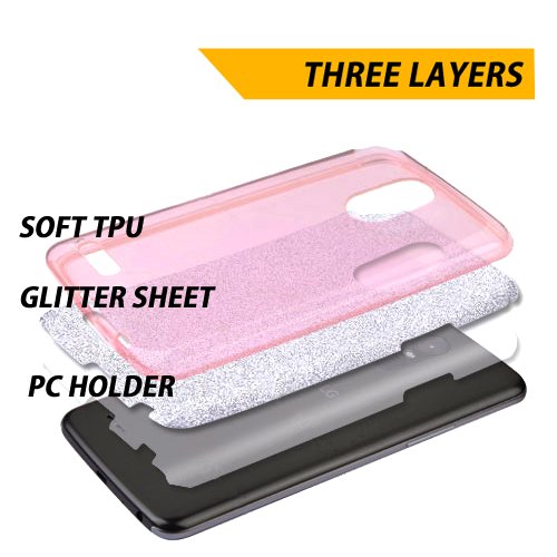LG Stylo 3 Stylus 3 Stylo3 Plus Full Glitter Hybrid Case ROSE GOLD for Boost Mobile , MetroPCS , Sprint , T-mobile