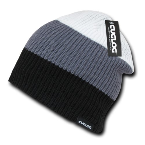 (Cuglog Beanies)/Accessories/Hats/DIRECT FROM USA/Medium Length 3 Stripes Beanie Ski Cap by Cuglog (Black/Grey/White)