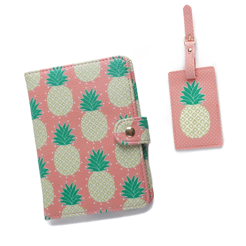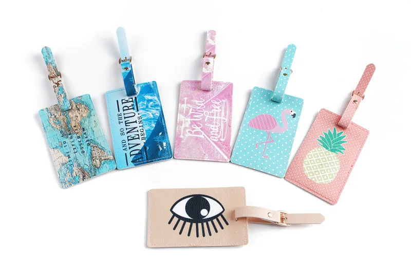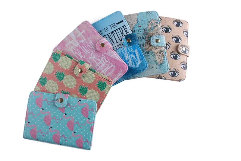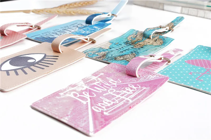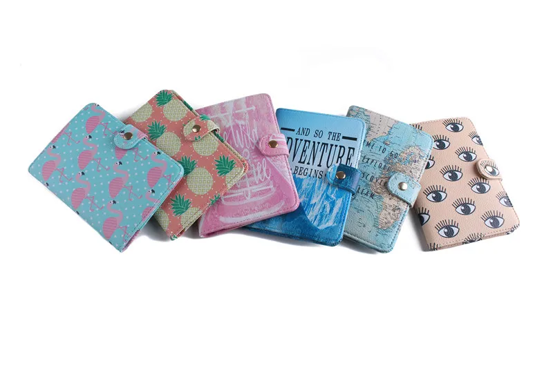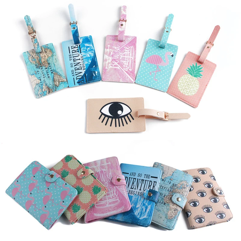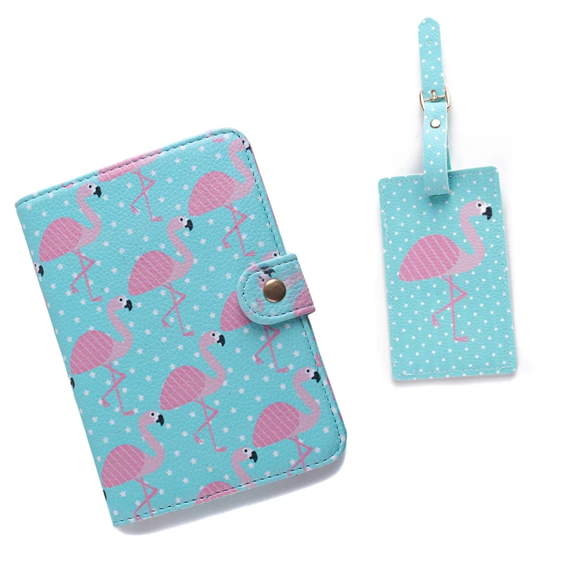 2ピース/セットpuホルダー女性旅行パスポート漫画パスポートカバーidクレジットカードフラミンゴ荷物タグ