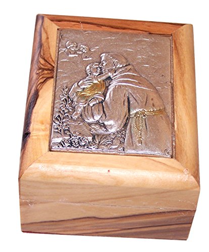 First Communion Box - Rosary Box - Bethlehem Olive wood (Metal - St - Anthony)