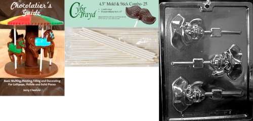 Cybrtrayd 'Pirate Skull Lolly' Kids Chocolate Candy Mold with 25 4.5-Inch Lollipop Sticks and Chocolatier's Guide