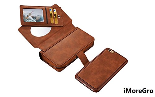 [Description] Designed to fit perfectly with the Apple iPhone 6s / iPhone 6 - 4.7 Inch. High-quality_ durable_ soft Premium PU Leather and interior hard shell provides maximum protection for your device against scratches_ shocks or minor slips. 2 in i design leather case for iPhone 6/6S_ zipper wallet plus detachable slim case; multiple compartments for placing credit cards_ cash_ coins_ photo_ ID_ etc. No need to carry both a phone and a wallet. Detachable Magnetic Inner Slim case and outer flip card slot case are easy to combine and remove by magnet_ so you don``t have to hold the entire wallet to your ear when answering phones. Zipper closure ensures all your cards_ money and personal staffs stay inside securely; snap-on button above the case to provide double safety. Detachable wrist strap for easy carrying while shopping or walking.