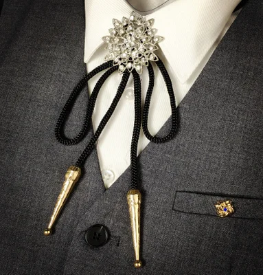 패션 남성 클래식 꽃 모양 셔츠 볼로 타이 캐주얼 웨딩 비즈니스 파티 크리스탈 남성 넥타이 창조적 인 선물 볼로 타이