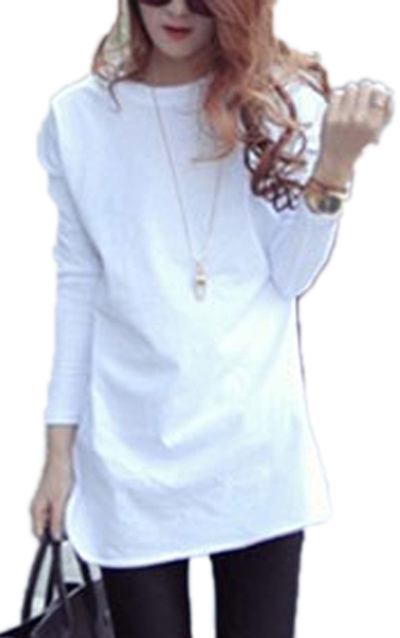 Recommended for everyday use White long-sleeved plain T-shirt.