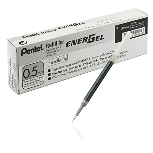 Pentel Refill Ink for EnerGel Liquid Gel Pen, 0.5mm, Needle Tip, Black Ink, Box of 12 (LRN5-A-12)