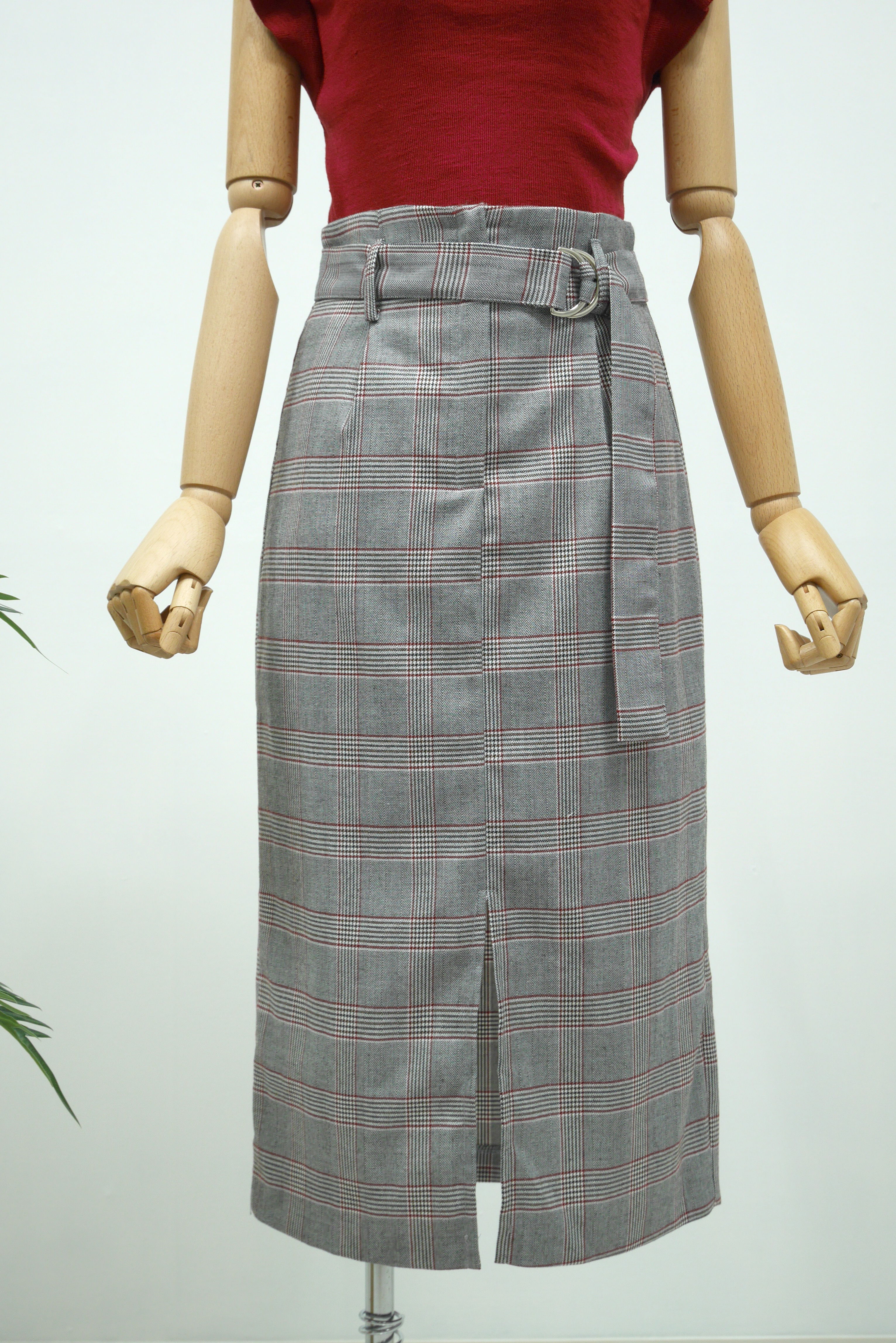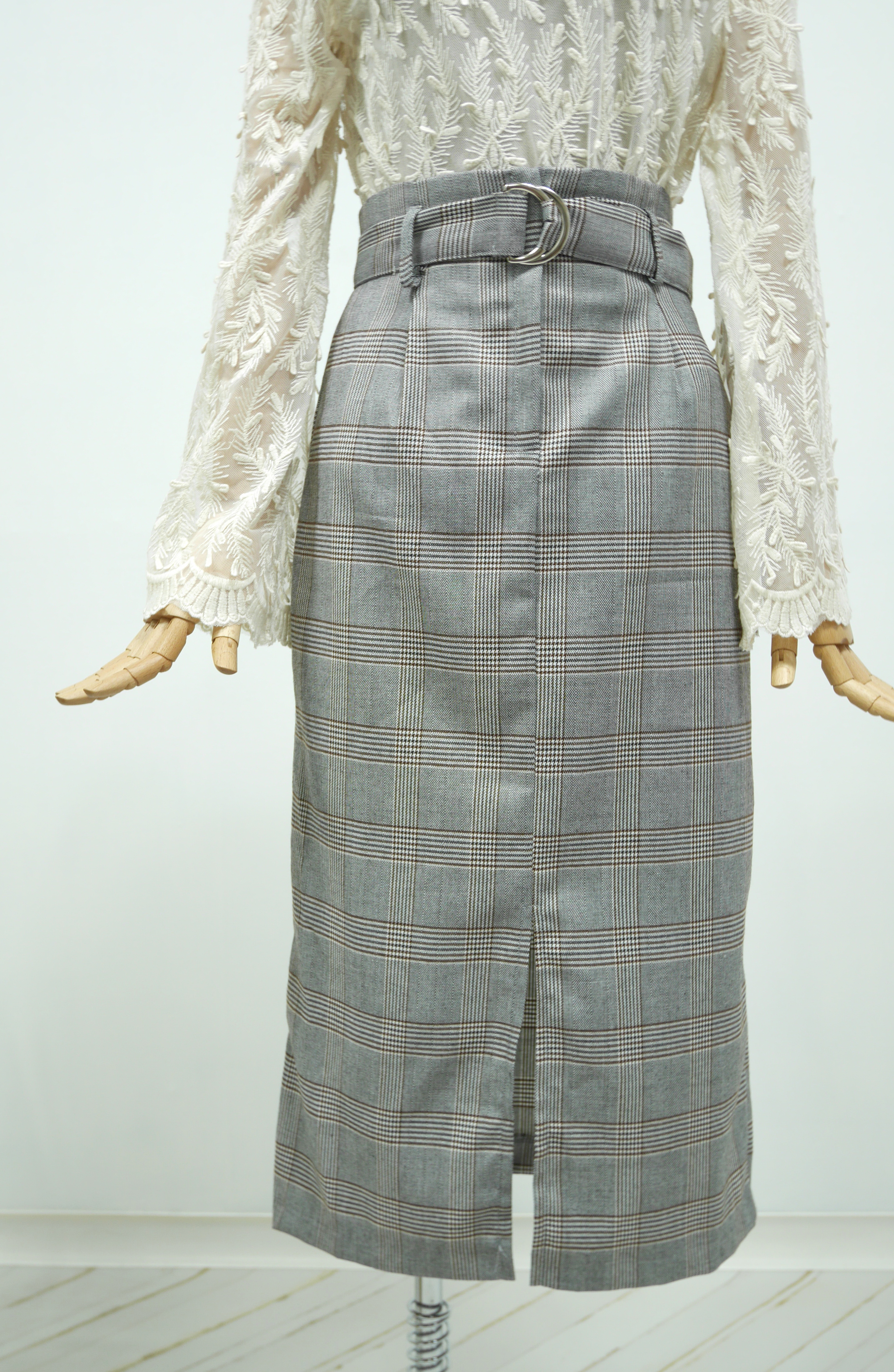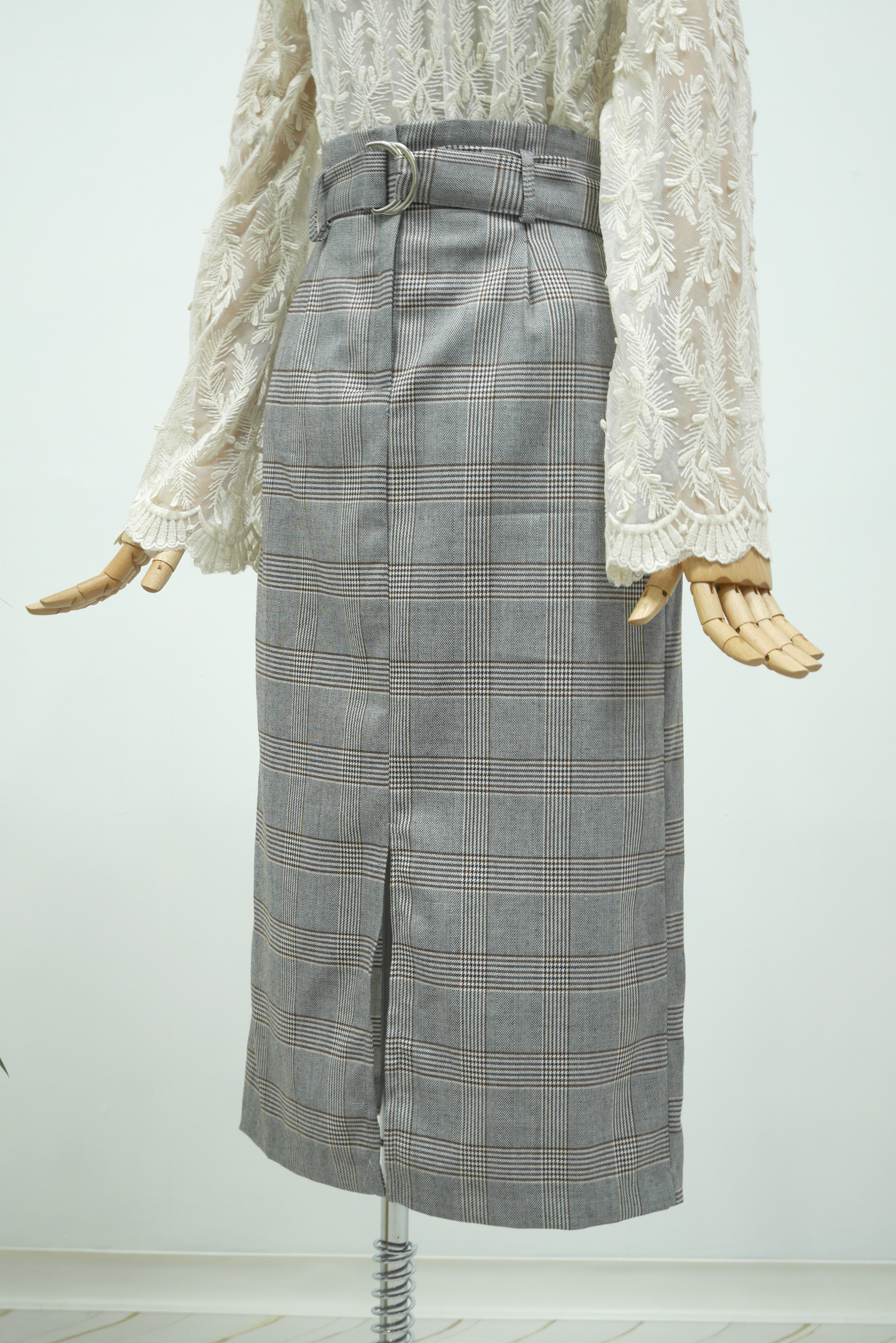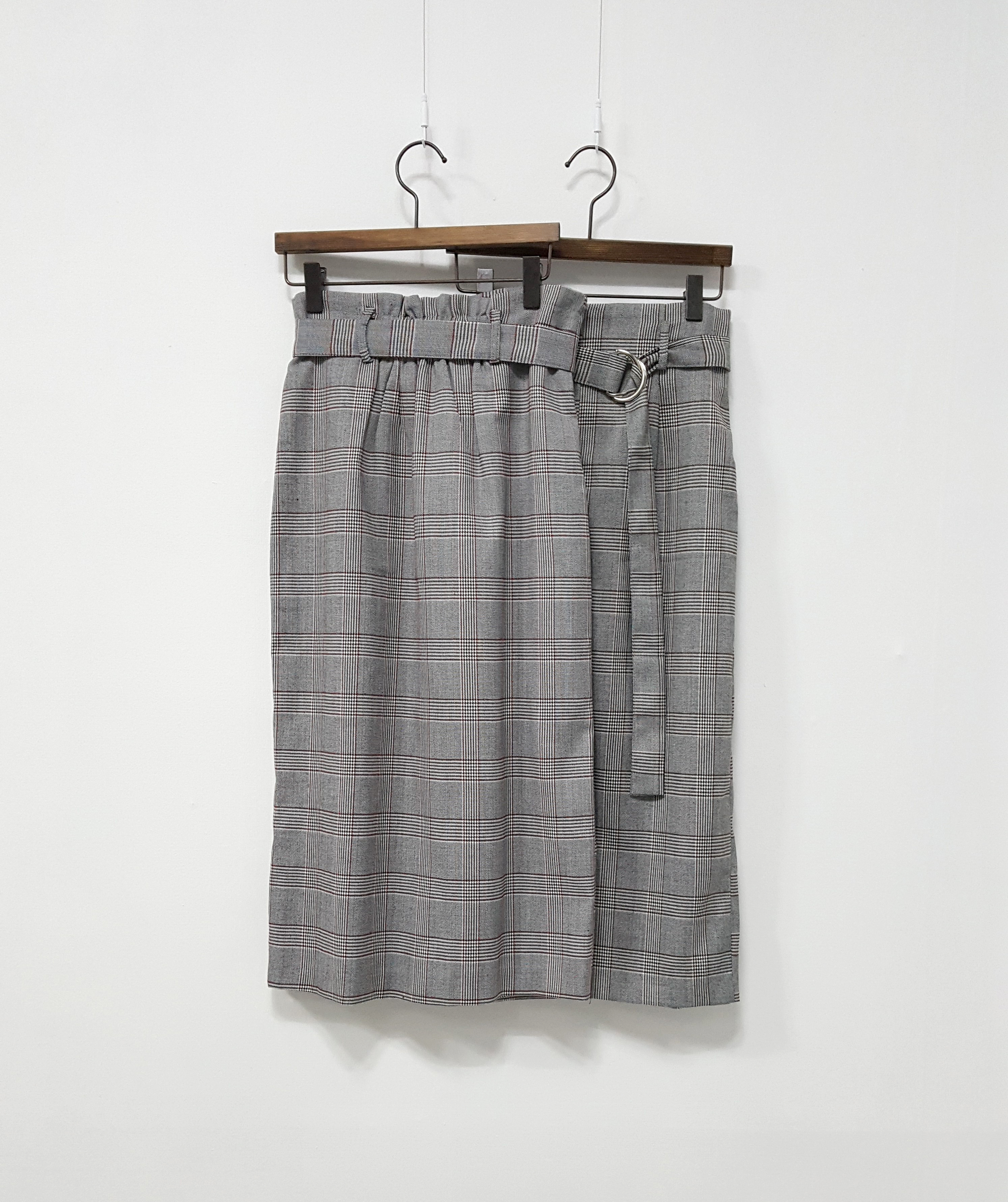 D Ring Belt Check Long skirt 2color Fall in advance